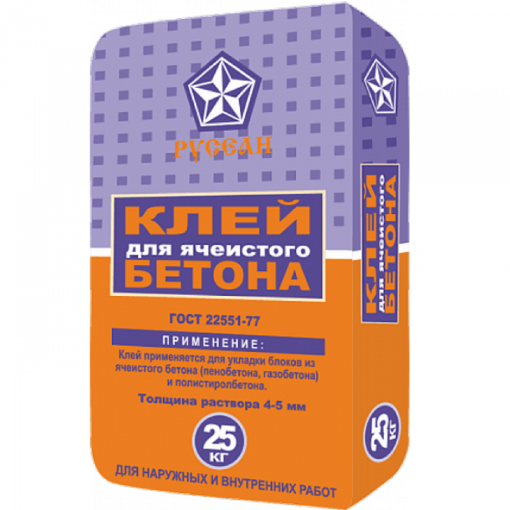 Клей Русеан для ячеистого бетона 25 кг купитьКлей Русеан для ячеистого бетона предназначен для укладки блоков, выполненных из ячеистого бетона (газобетона, пенобетона) или полистиролбетона. Обладает высокими адгезионными качествами, высокой пластичностью, является водостойким и морозостойким мате...