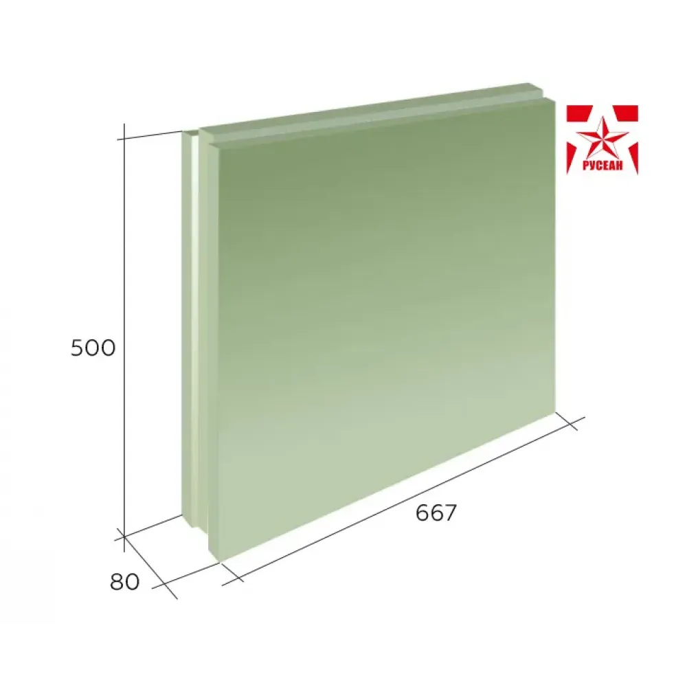 Плита пазогребневая Русеан полнотелая влагостойкая 667х500х80мм (площадь плиты 0,33м2) для помещений с повышенной влажностью