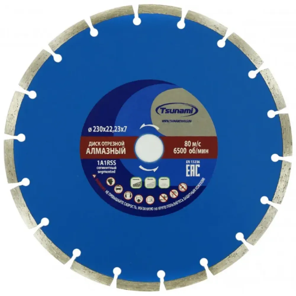 Сегментный алмазный диск 230х22,23х7 мм Луга Tsunami DD0000230022007 используется для резки различных марок бетона, кирпича, камня, тротуарной плитки, асфальта без использования водяного охлаждения. Применяется на болгарке соответствующего типоразмера.