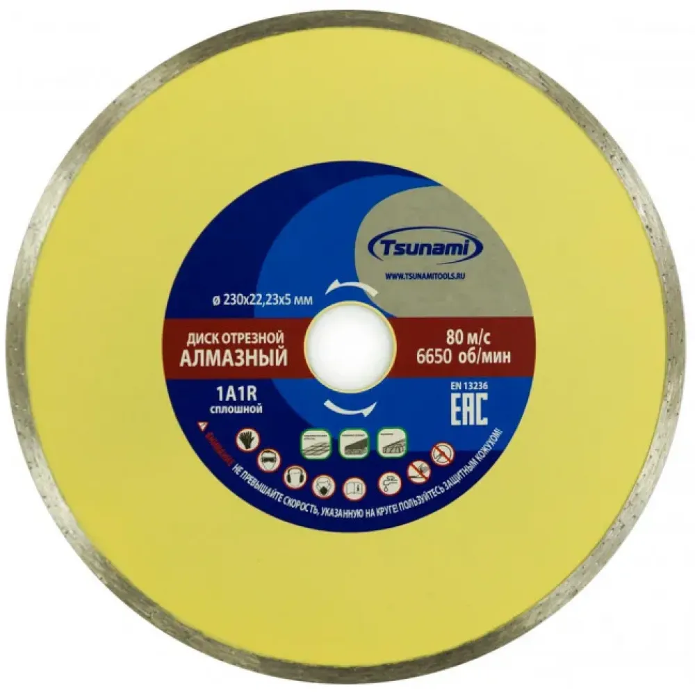 Диск алмазный сплошной 230х22,23х5 мм Луга Tsunami DD0010230022005 используется для мокрой резки керамической плитки, керамогранита и мрамора. Сплошная режущая кромка обеспечивает ровный и чистый рез без сколов. Применяется на УШМ и плиткорезах с постоянной подачей воды.