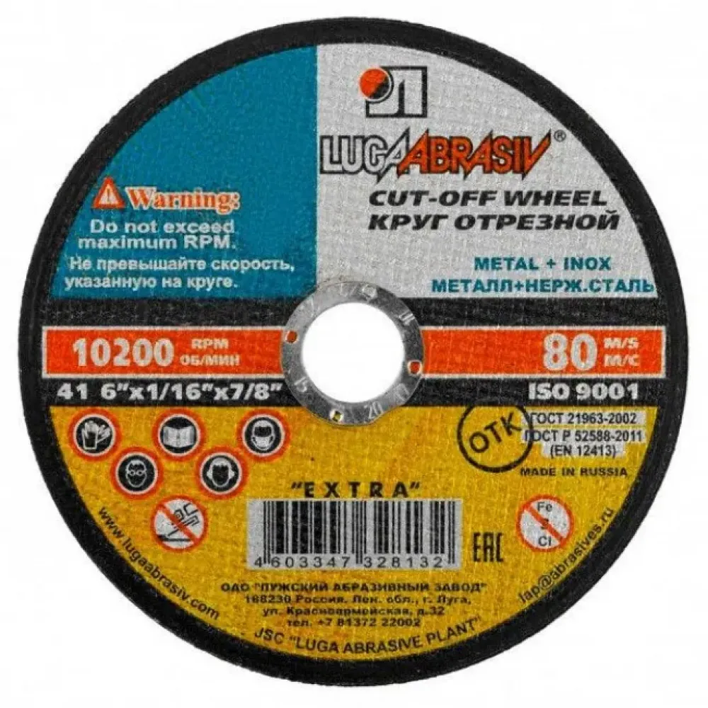Отрезной диск по металлу Луга-Абразив 230х2х22,23 (А36, тип 42 - вогнутый) мм, ГОСТ Р 57978-17,ГОСТ Р 52588-11, предназначен для эффективного процесса нарезки металлических изделий – конструкций, деталей, профилей. Подходит для болгарки (УШМ), имеет вогнутую форму. Состав диска позволяет избежать загрязнения материала.
