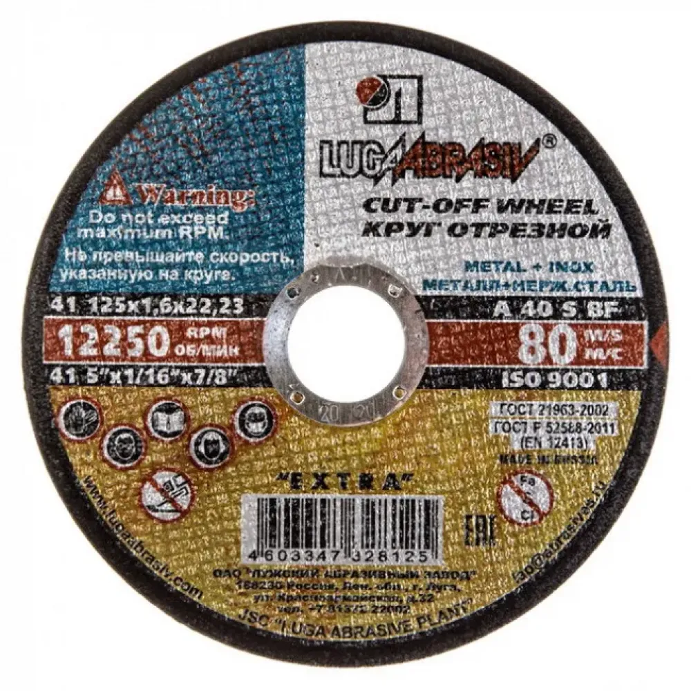 Круг отрезной по металлу Луга 125х22х1,6 мм