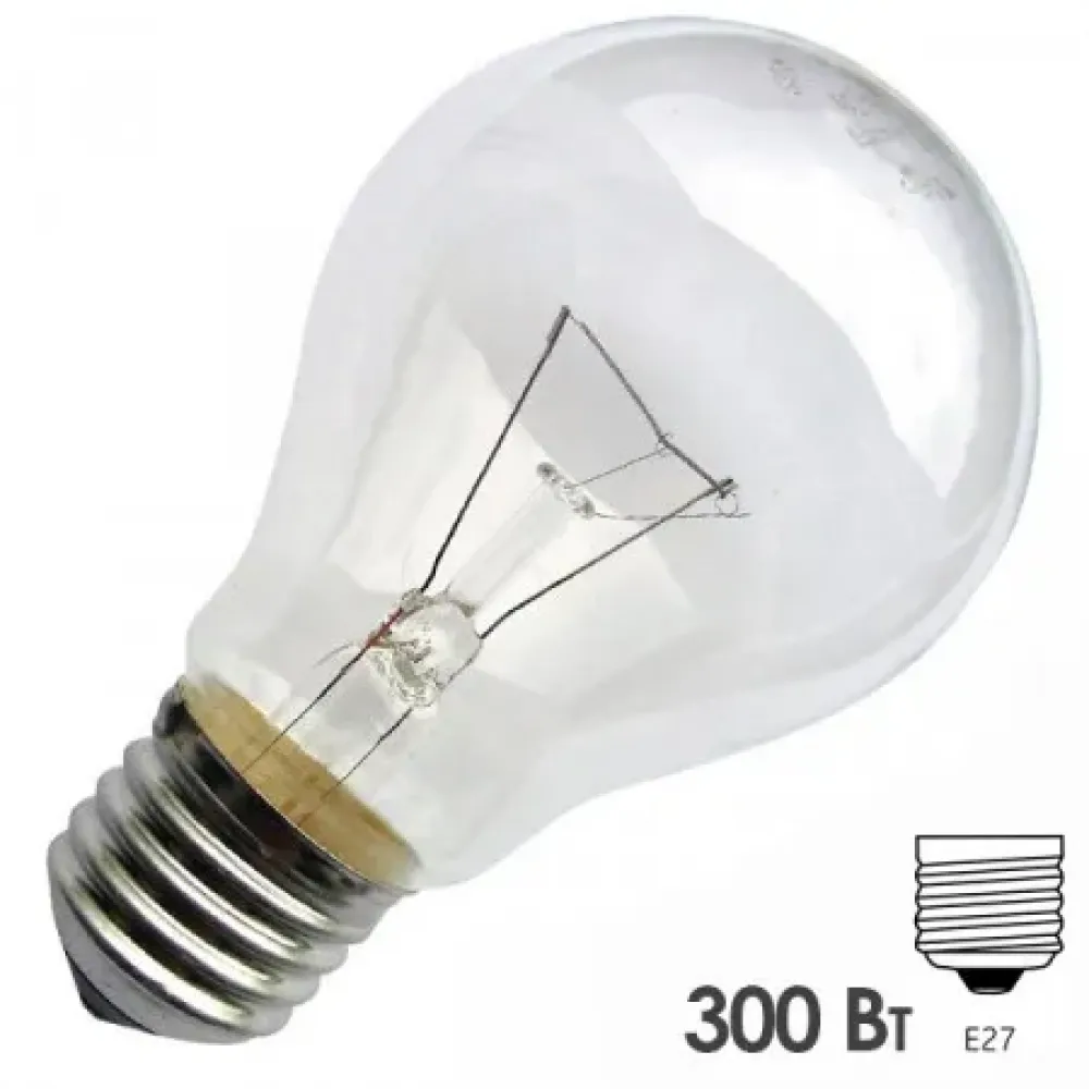 Обычная вольфрамовая лампа формы "Груша" мощностью 300 Вт на 220 Вольт с цоколем E27 общего назначени