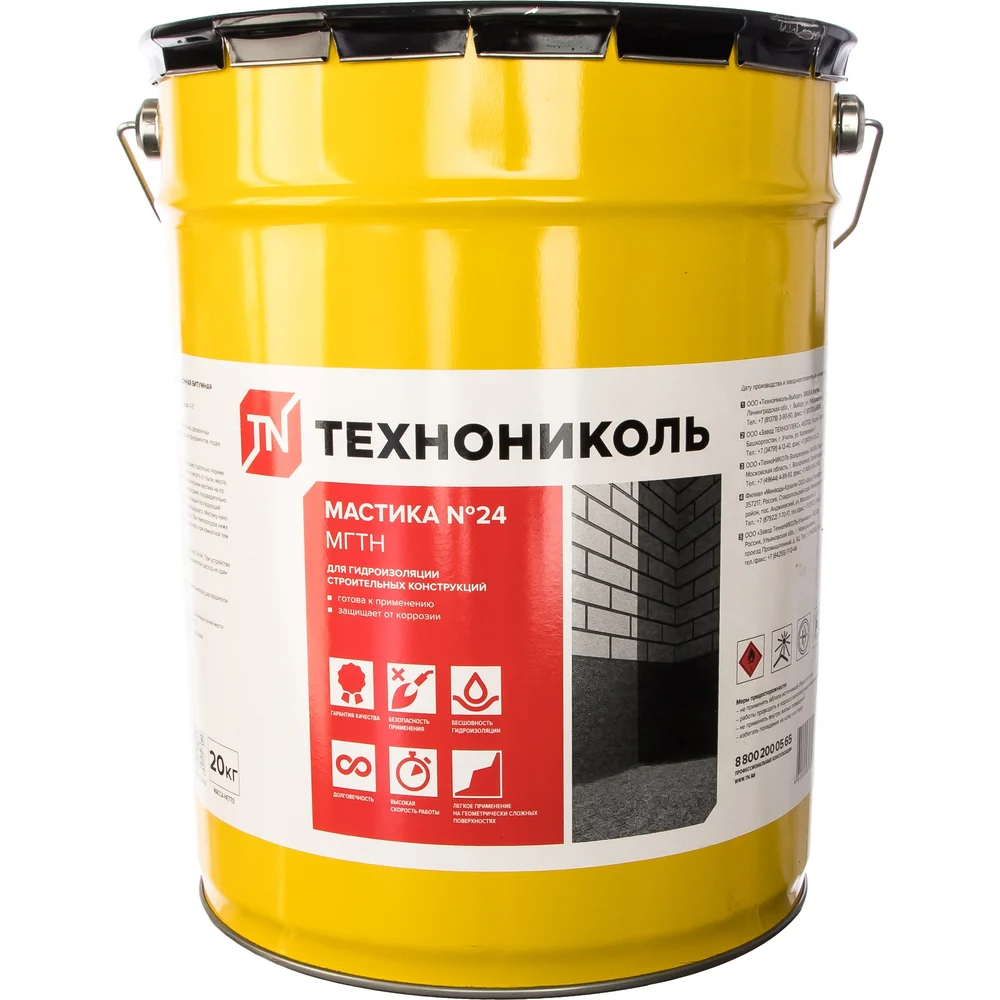 Мастика гидроизоляционная Технониколь № 24 МГТН представляет собой полностью готовый к применению материал на основе нефтяного битума, содержащий технологические добавки, минеральные наполнители и растворитель.