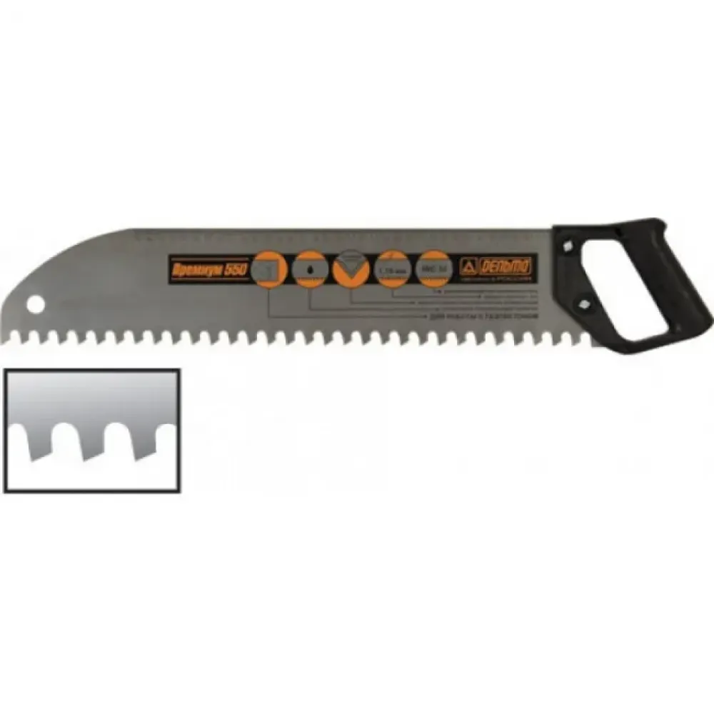 Ножовка по пенобетону Fit 550мм - это удобный в работе ручной режущий инструмент. Эргономичная рукоятка выполнена из высококачественного пластика и позволяет выдерживать большие нагрузки. Полотно ножовки Fit 550мм изготовлено из качественного закаленного металла и имеет зубья с твердосплавными напайками.