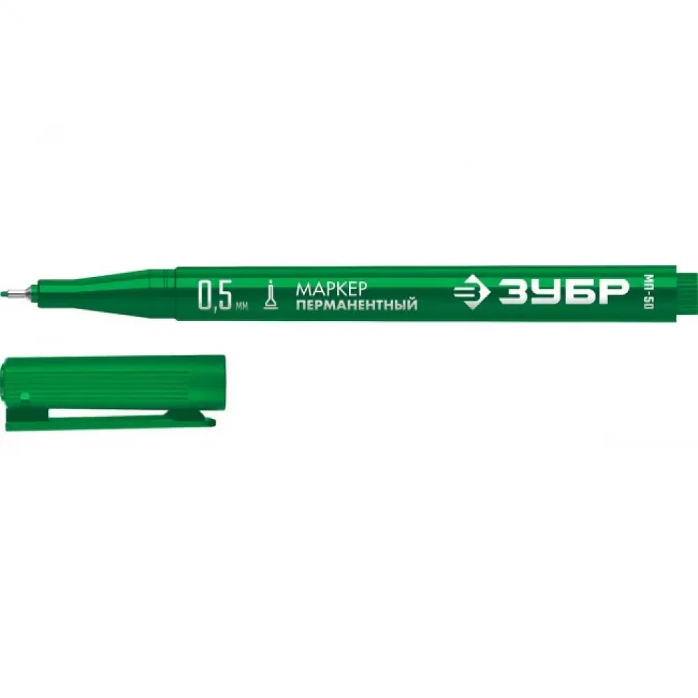 Перманентный маркер ЗУБР Профессионал МП-50 0,5 мм, зеленый, экстратонкий 06321-4