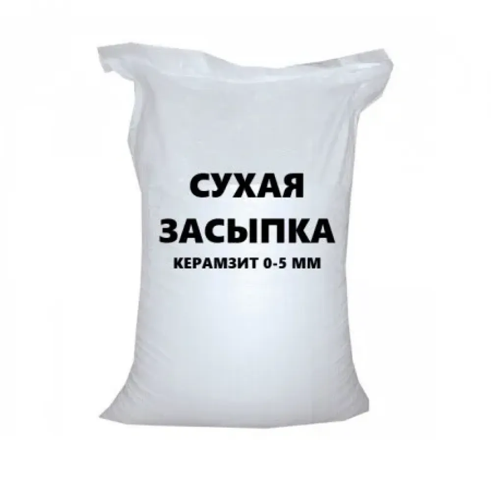 Сухая засыпка используется в сухом керамзитовом песке с суммарным коэффициентом фракций 0-5 мм, для создания ровной поверхности сухого пола. Сухая засыпка выполняет роль выравнивающего, звукоизоляционного, а также утепляющего слоя. Кроме того, благодаря тому, что керамзит является лёгким материалом, «сухая стяжка» оказывает меньшую нагрузку на перекрытия по сравнению с «мокрой стяжкой» из цементно-песчаных смесей, что немаловажно, особенно если перекрытия деревянные.