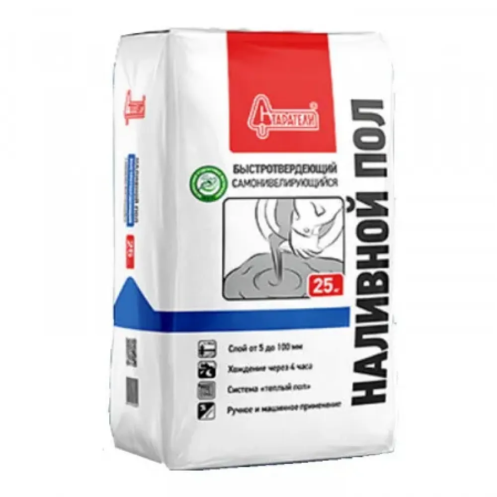 Пол наливной Старатели быстротвердеющий самонивелирующийся 25 кг предназначен для базового и финишного выравнивания оснований (бетонных, цементно-песчаных, гипсовых, ангидридных) под последующую укладку напольных покрытий (плитка, ламинат, паркет, линолеум, ковролин и т.д.). Подходит для системы «теплый пол» и устройства стяжек на разделительном слое. Идеален в условиях сжатых сроков. Используется в помещениях с нормальной влажностью во всех типах зданий и сооружений А-В (жилые дома, детские учреждения, организации здравоохранения, санатории, спортивные сооружения, промышленные предприятия, административные здания и т.д.). Применяется для ручного и механизированного нанесения. ГОСТ 31358