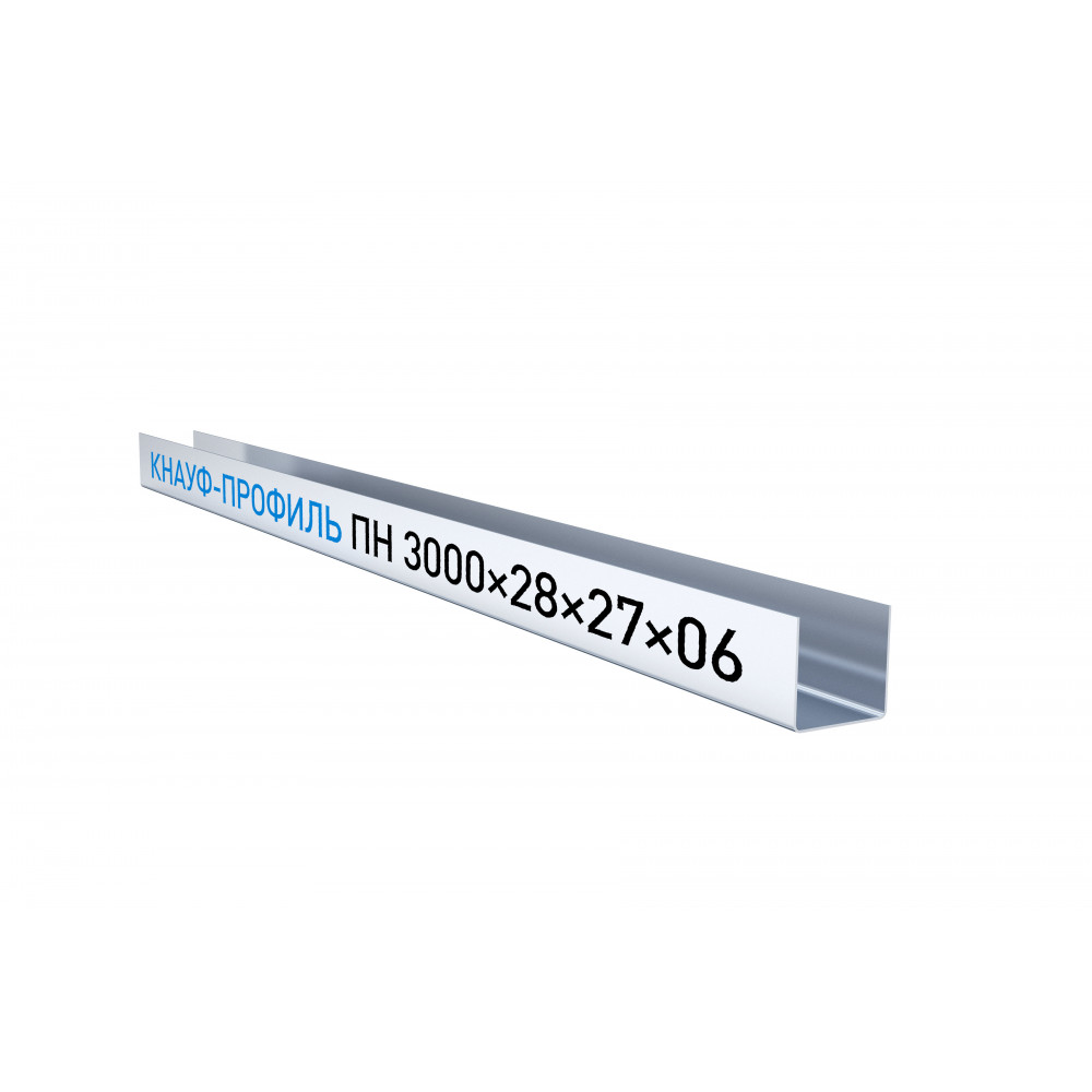 Направляющий профиль ПН КНАУФ 28 27 применяется для устройства каркасов подвесных потолков, облицовок и других конструкций на основе КНАУФ-листа (ГКЛ, ГКЛВ, ГКЛО, ГКЛВО) и КНАУФ-суперлиста и других листовых материалов КНАУФ.