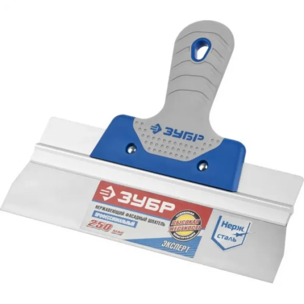 Шпатель ЗУБР ЭКСПЕРТ малярный фасадный, нержавеющее полотно, двухкомпонентная рукоятка ( 10049-xx_z02 ) Незаменимый инструмент при работе с различными строительными смесями на больших поверхностях. Полотно из нержавеющей стали обеспечивает надежность и долгий срок службы инструмента, алюминиевое ребро жесткости предотвращает искривление полотна, а эргономичная двухкомпонентная рукоятка снижает утомляемость, создавая комфорт при работе.