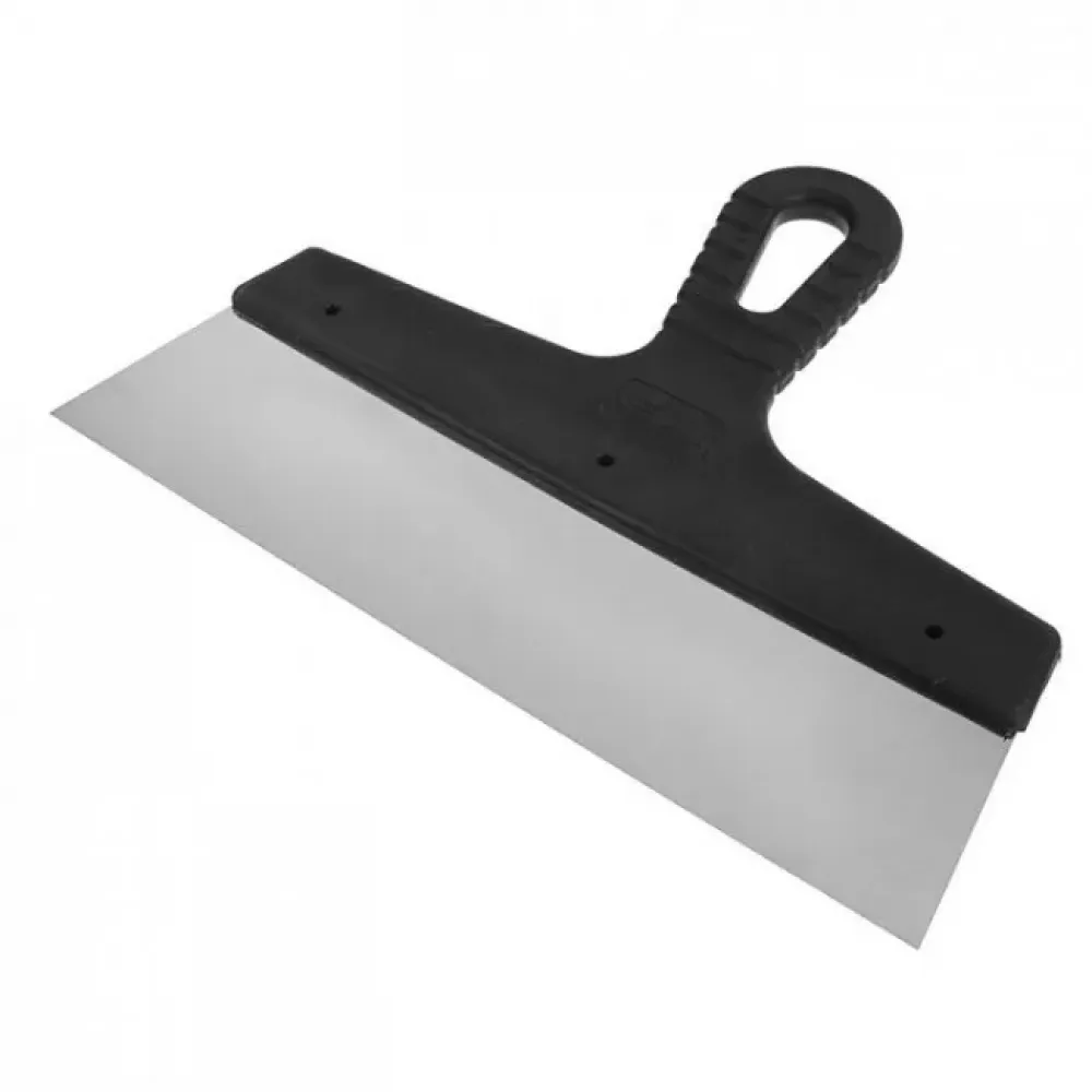 Шпатель Lux Политех-Инструмент с полотном шириной 300 мм применяется для нанесения, выравнивания и сглаживания строительных растворов и смесей. Рабочее полотно изготовлено из нержавеющей стали и устойчиво к образованию коррозии. Эргономичная пластмассовая рукоятка с рельефной поверхностью делает работу более комфортной. Упругое рабочее полотно быстро принимает первоначальную форму даже после сильных изгибающих нагрузок. Ровное лезвие и наклонная рукоятка облегчают нанесение и выравнивание составов.
