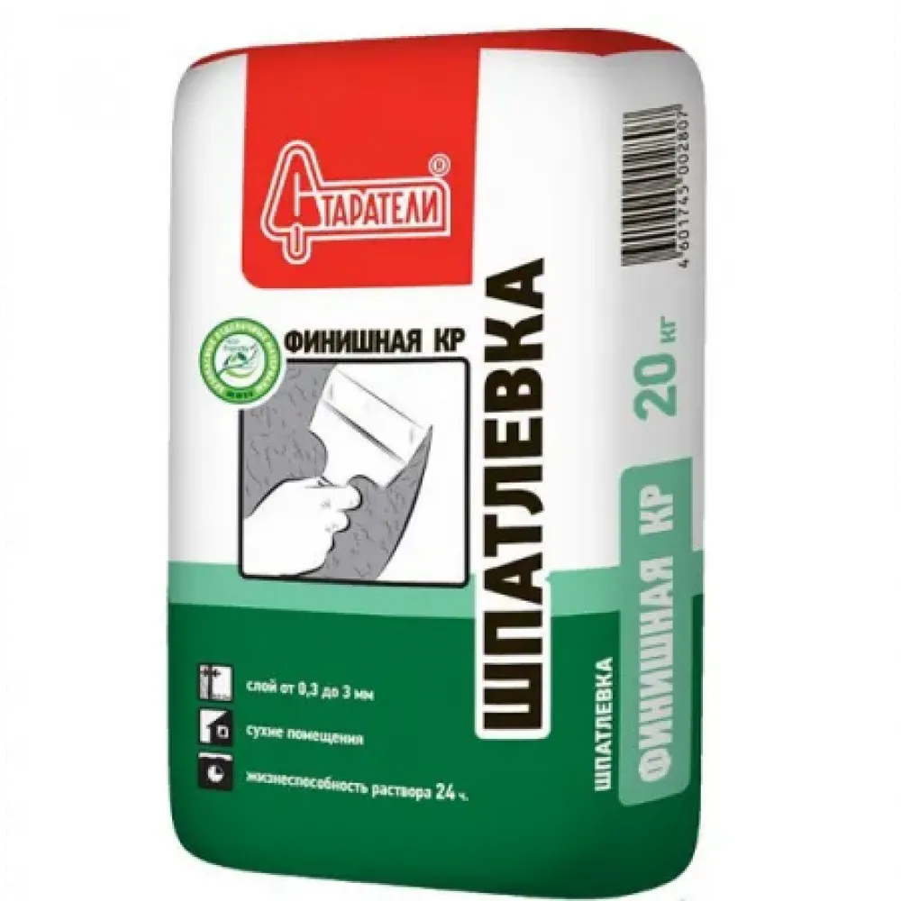 Финишная шпатлевка Старатели КР предназначена для финишного шпатлевания стен и потолков внутри помещений всех типов зданий и сооружений (A-B), включая помещения, где предусмотрен режим влажной дезинфекции. Образует гладкое и исключительно белое основание. Может использоваться только в сухих помещениях, особенно удобна для шпатлевания гипсокартона и потолков. Исключительно белый цвет и высокая укрывистость позволяет экономить краску при последующем окрашивании.
