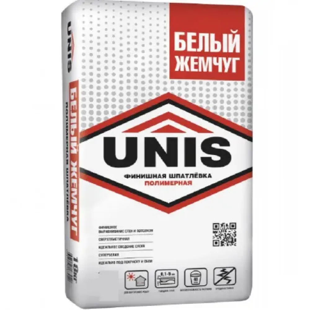 Шпатлевка полимерная Unis Polymer Finish высокопрочная 15 кг для окончательного выравнивания поверхностей стен под последующую финишную отделку (поклейка обоев, окрашивание, нанесение декоративных материалов). Особенно рекомендуется в качестве финишной отделки потолков. Применяется внутри отапливаемых помещений с нормальной влажностью.