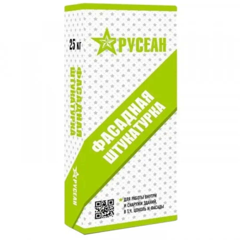Фасадная штукатурка Русеан представляет собой сухую штукатурную смесь для наружных работ серого цвета на основе портландцемента, минеральных и полимерных добавок. Соответствует ГОСТ 33083-2014. Это специальная смесь для фасадов, цоколей, наружных работ. Предназначена для оштукатуривания фасадов зданий, цоколей, помещений с любым уровнем влажности, для выравнивания оснований под облицовку плиткой, природным камнем или декоративную штукатурку, а также под покраску после предварительного шпатлевания.