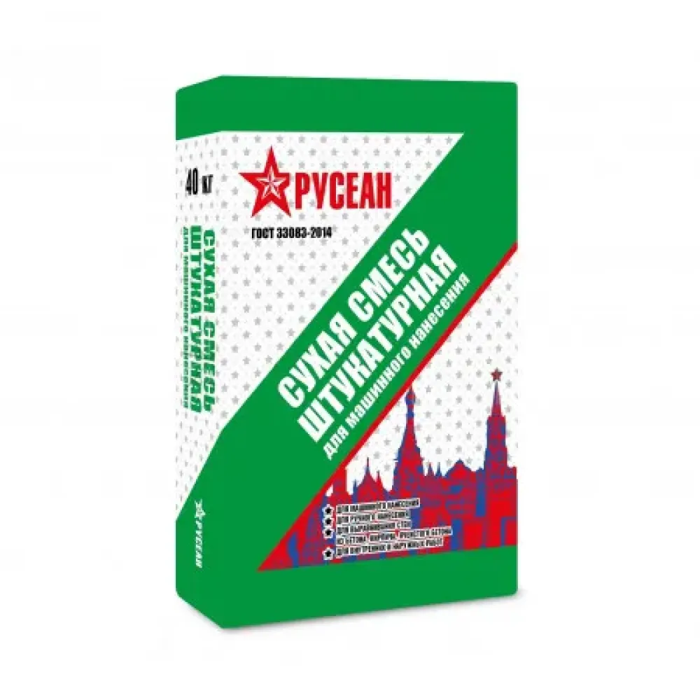 Цены на штукатурную сухую смесь для машинного нанесения Русеан 40 кг и сервис нашего магазина Вас приятно удивят!