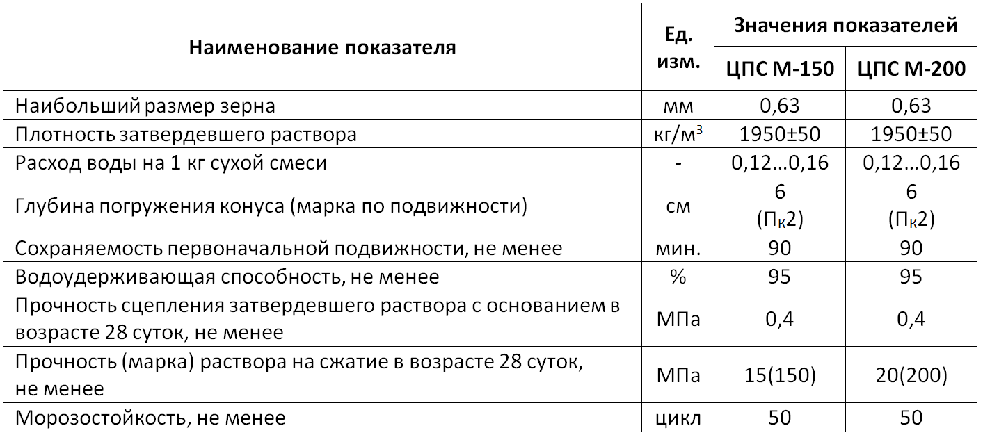 сантиметр, что дает смеси категорию прочности В12,5. Уровень водонепроницаемости W4.