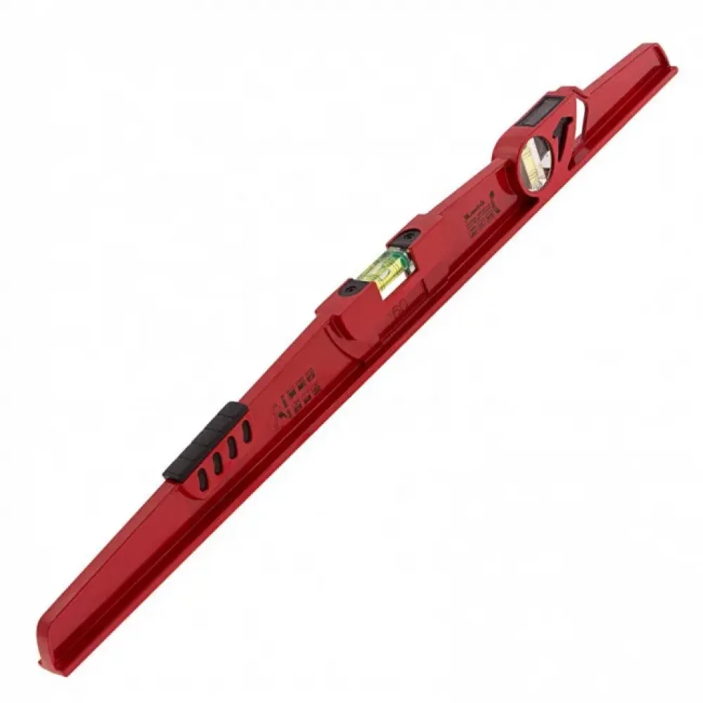 Литой алюминиевый уровень Matrix 34907 длиной 600 мм, с ударной площадкой, оснащен 2 глазками, 1 из которых фронтальный. Инструмент предназначен для использования на стройплощадке, при выполнении ремонтных и монтажных работ. Оптимально подходит для использования при выравнивании плитки и кирпичной кладки.Для определения отклонения вертикали 90 градусов необходимо использовать пузырьковую ампулу только в верхнем положении уровня. Только базовая поверхность является рабочей (противоположная ампуле 180 градусов).