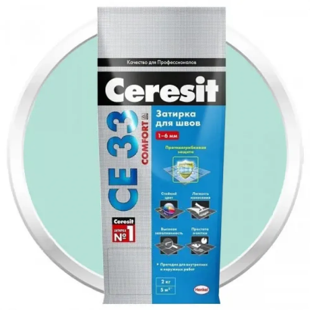 Затирка цементная Ceresit СЕ33 Comfort Мята - затирка с противогрибковым эффектом для швов плиточных облицовок шириной до 6 мм. Предназначена для заполнения швов керамических и каменных облицовок, устроенных на недеформирующихся основаниях (таких как бетон, цементные стяжки и штукатурки), на полах и стенах внутри и снаружи зданий. Может применяться в небольших крытых бассейнах.